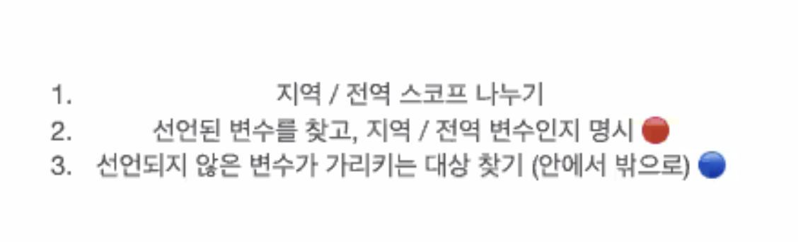 1.만약에 지역변수 x 에 선언된게 없다면 부모 스코프로 옮겨라