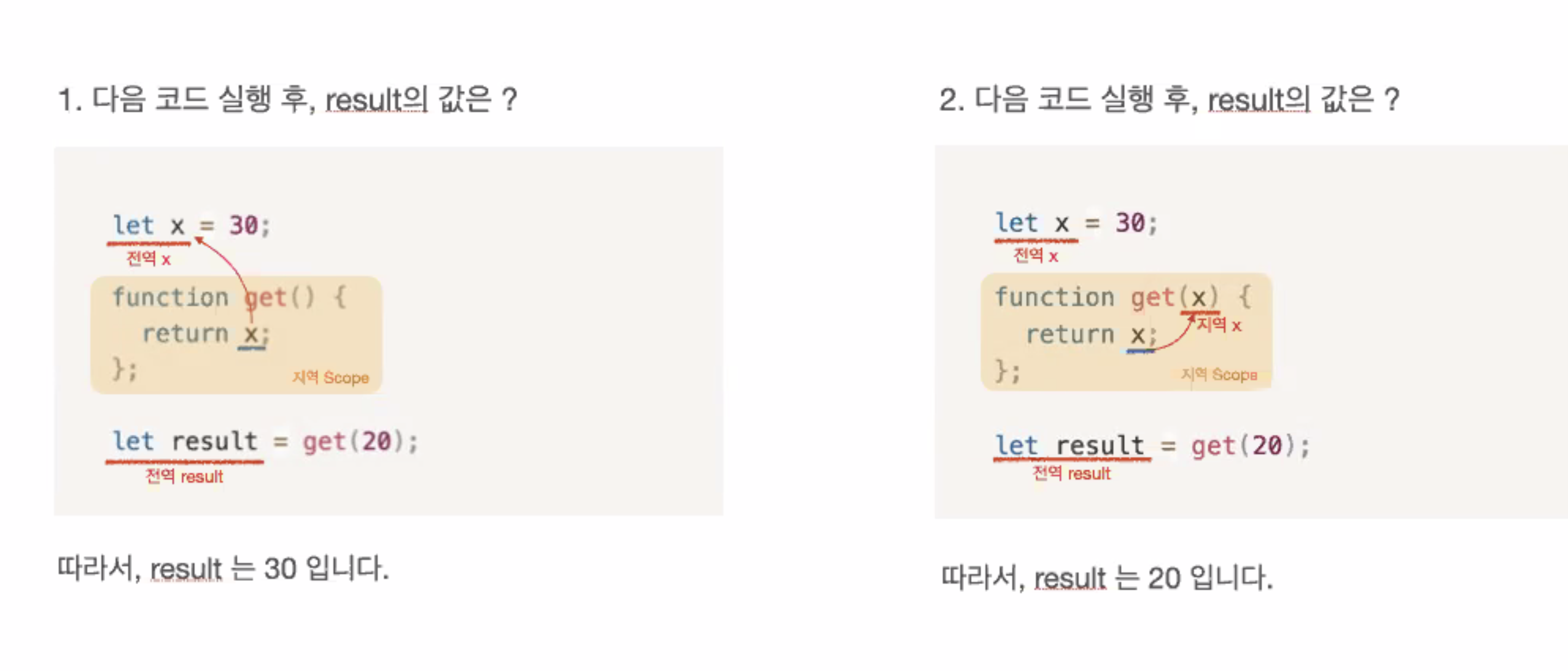 2. 지역변수 x는 let x 가 선언되어있다고 생각 그래서 return x는 매개변수로 생각하자!!