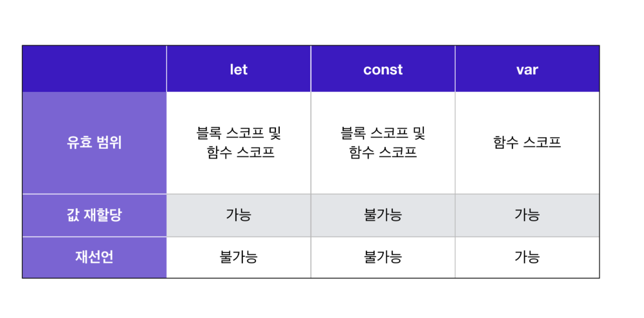 - block scope는 {} 형태 예를 들어 조건문 반복문...