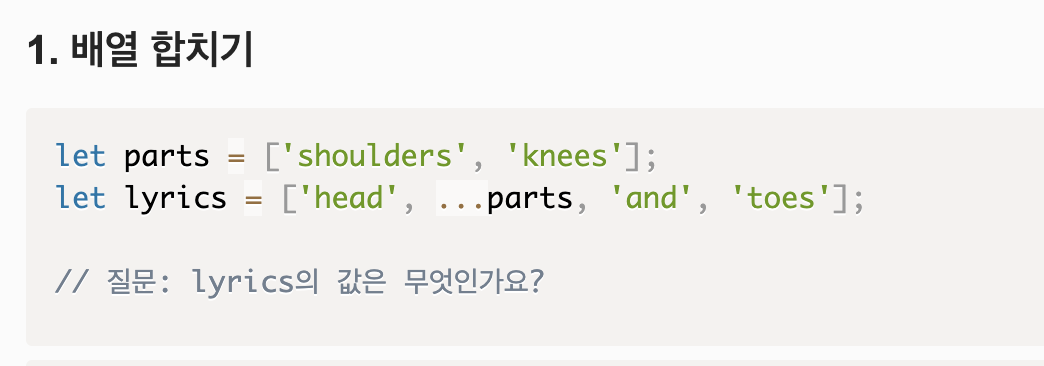 Spread 문법 :배열을 풀어서 함수의 인자 값으로 넣은 후 계산하고 싶을 때 !!기존 배열을 없애지 않는다(immutable)