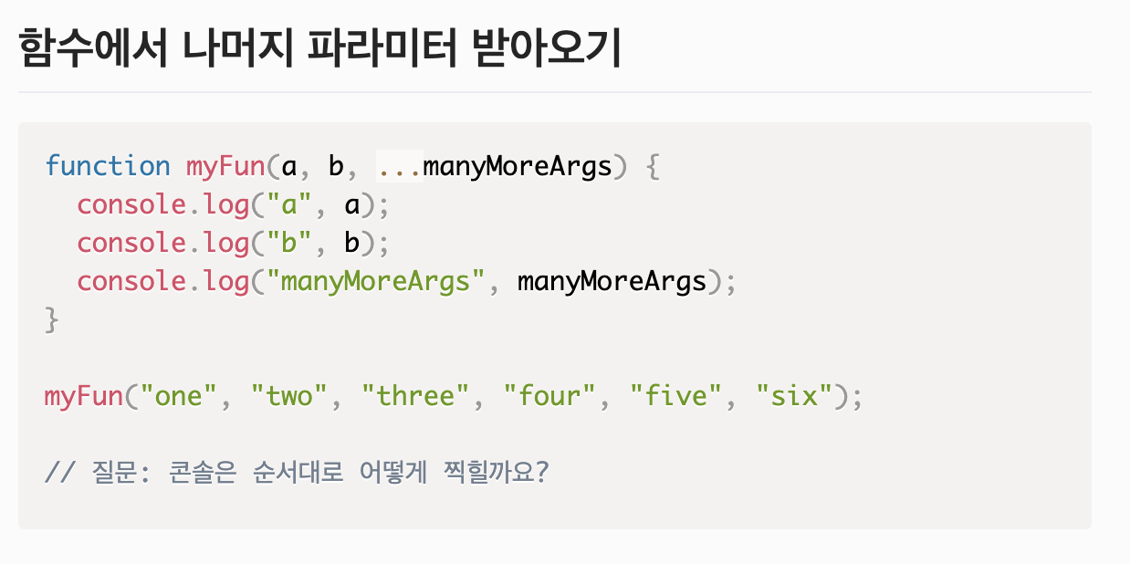 rest 예시 ( 임이의 인자를 배열로 바꿔준다.)