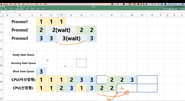 선점형은 : 다른 우선순위 기준으로 바꾸기 (EXIT OR BLOCK 상태를 설정하여 처리함)